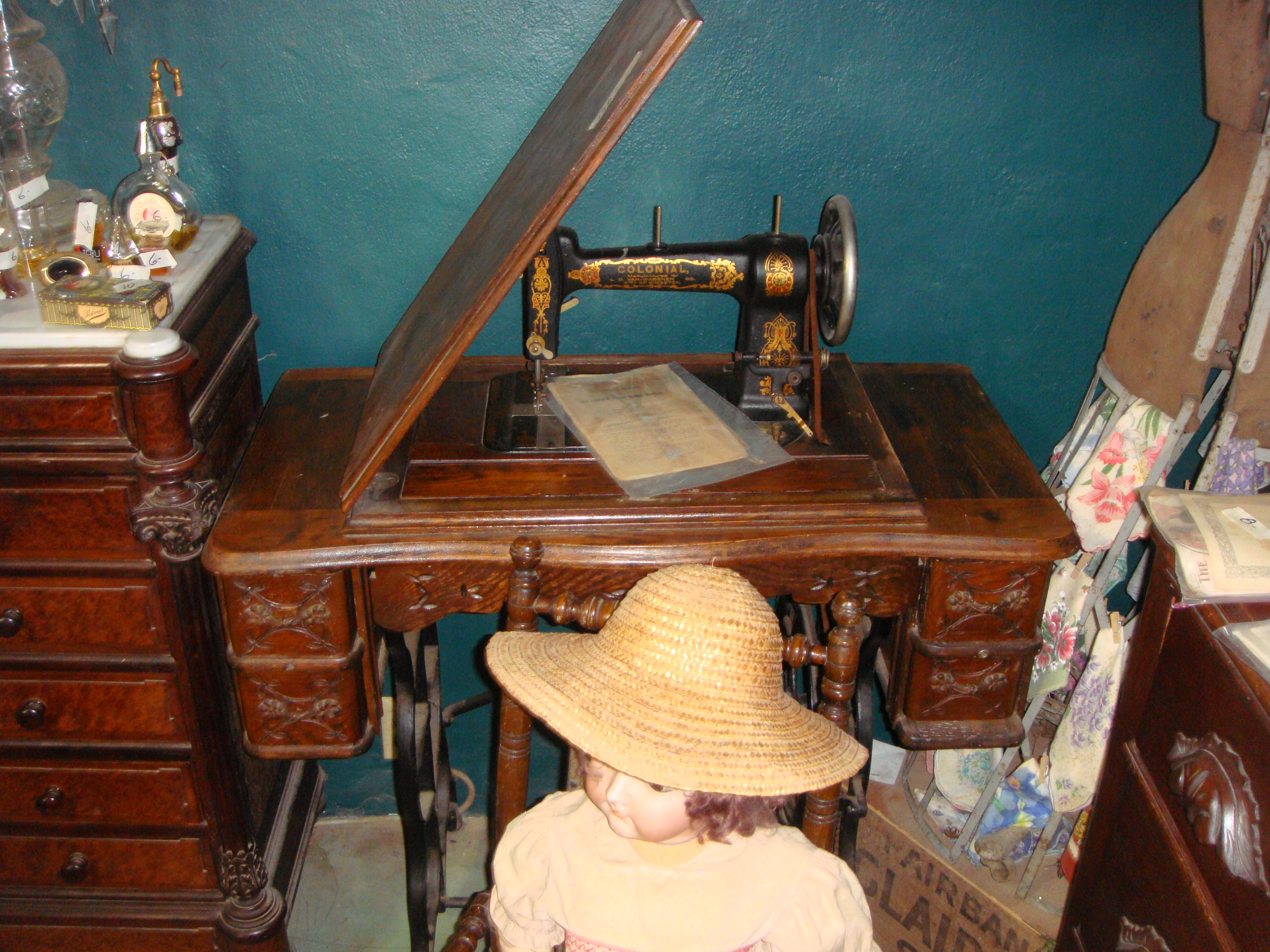 - Antique Colonial sewing machine with table