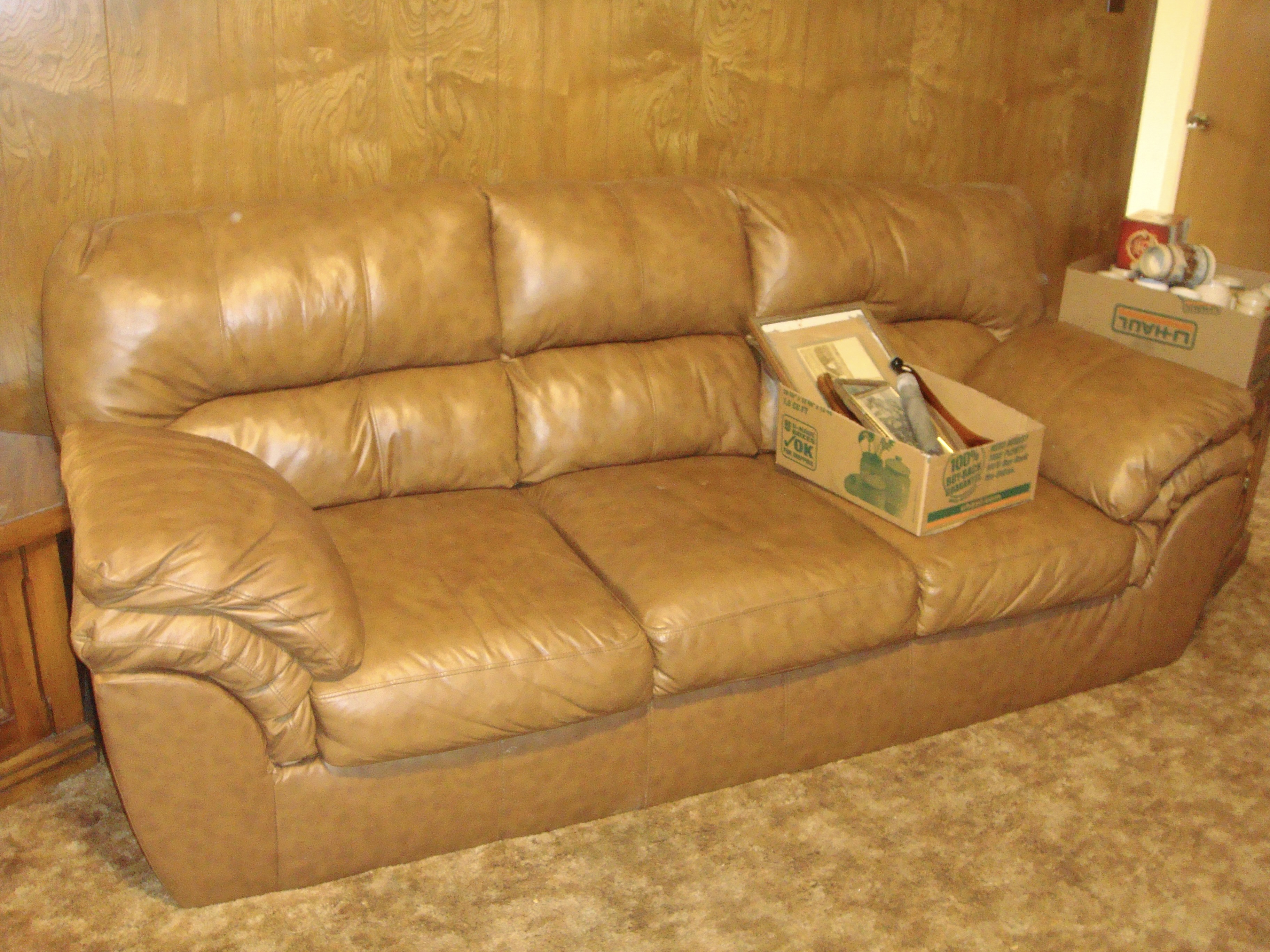 Furniture including leather sectional sofa, dining table & chairs, nesting tables, bar cart, Tempurpedic adjustable bed, dressers, side tables, hall tree and more