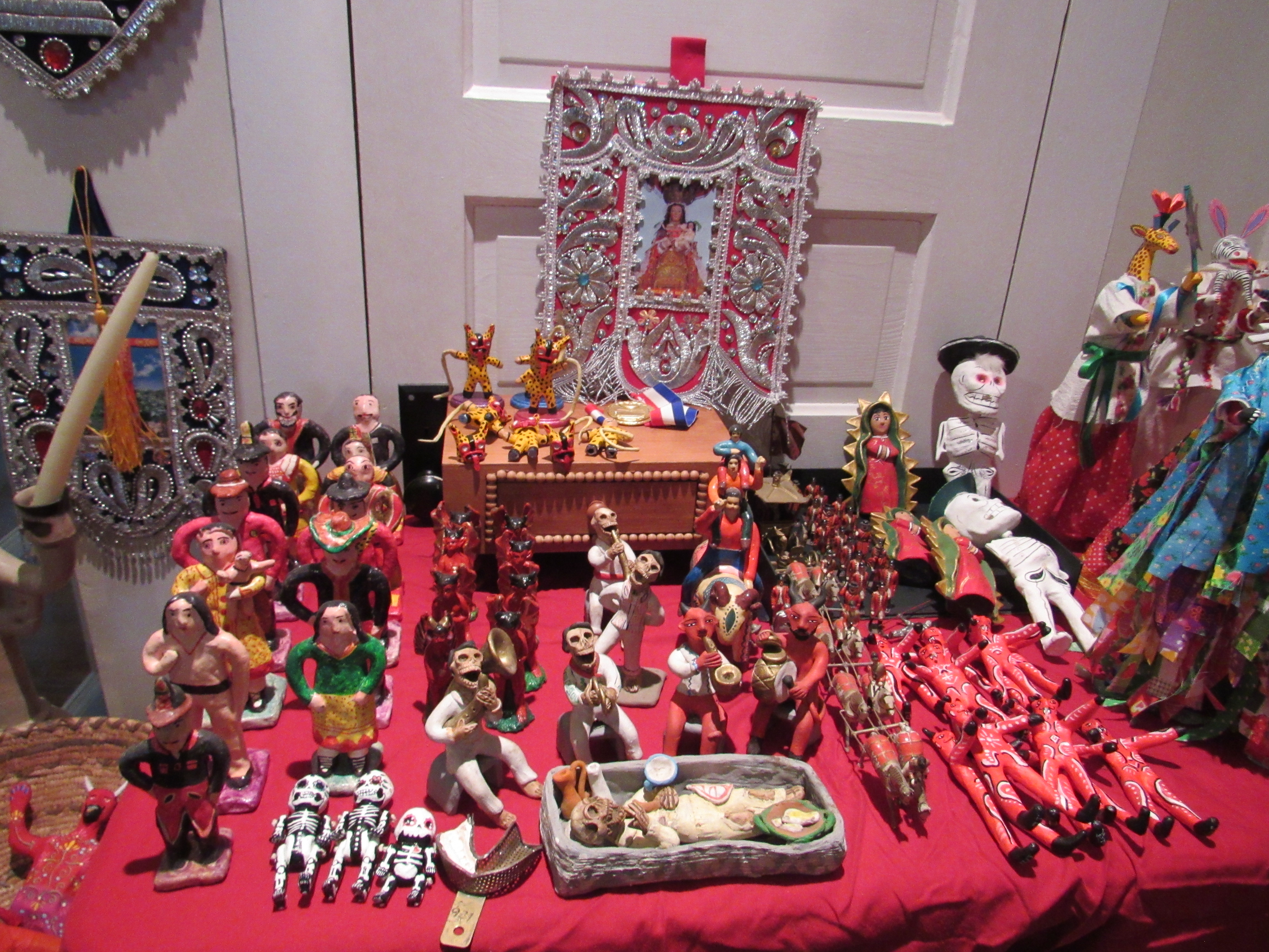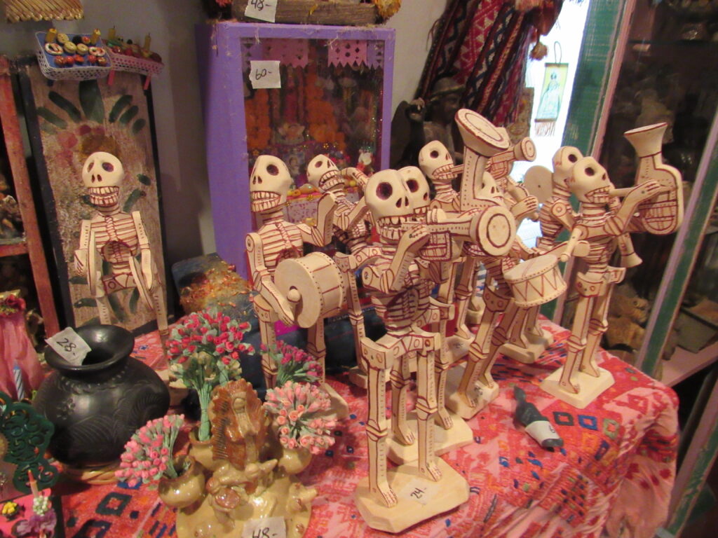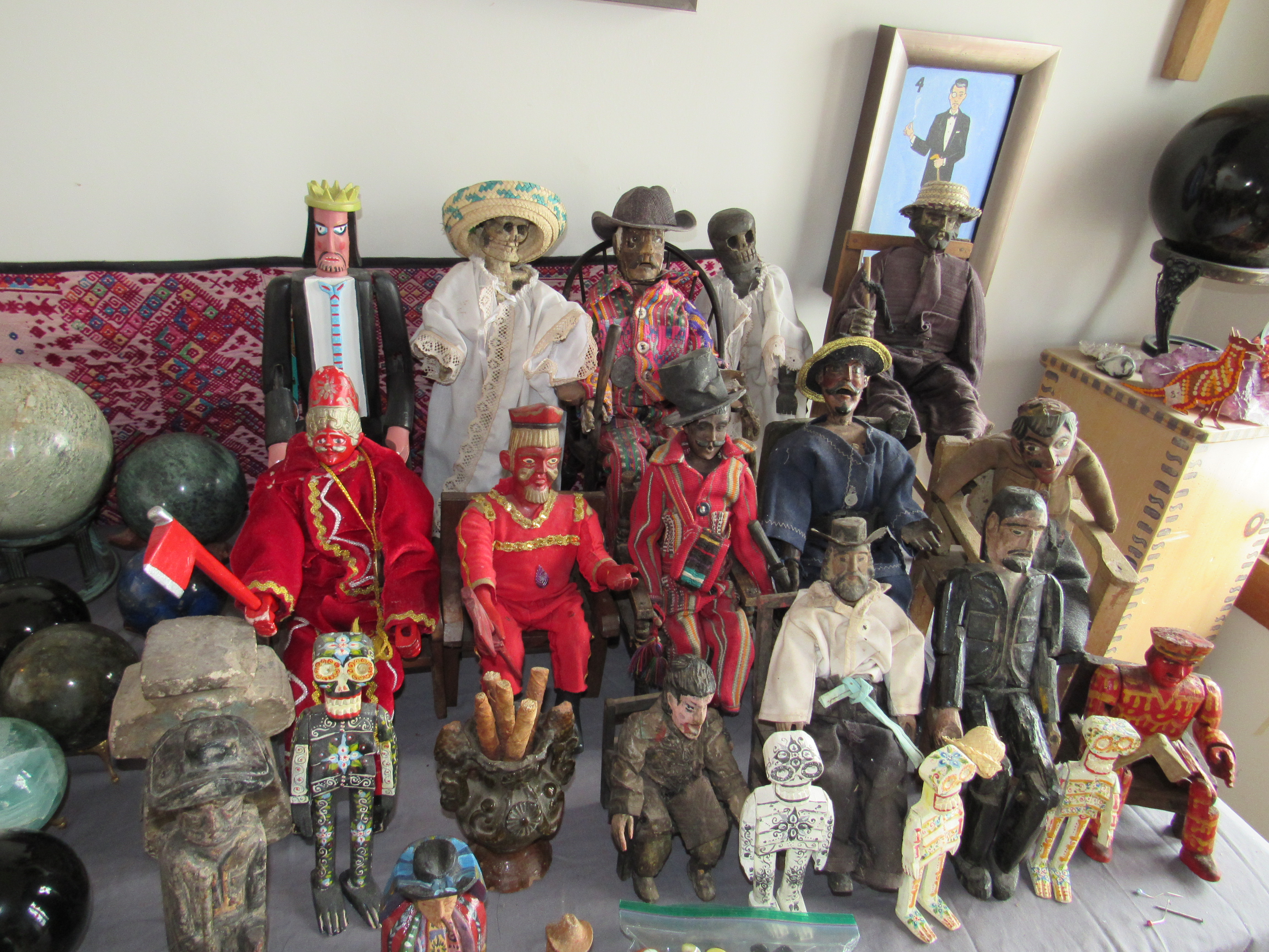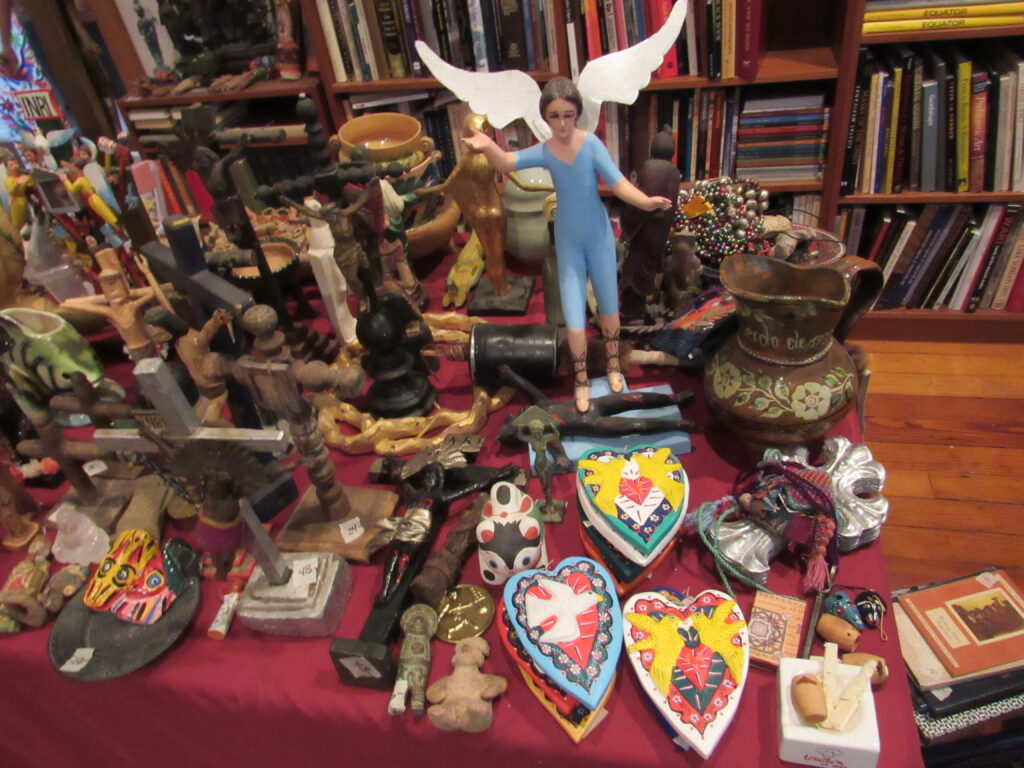 • A stunning array of folks art including textiles, traditional clothing, pottery, clay & terracotta figurines, Chango Mezcaleros, Alebrijes, Guatemalan paper mache masks, Niche shrines, Worry dolls, puppets, Milagros, crosses, angels, saints & more religious art, statues and so much more