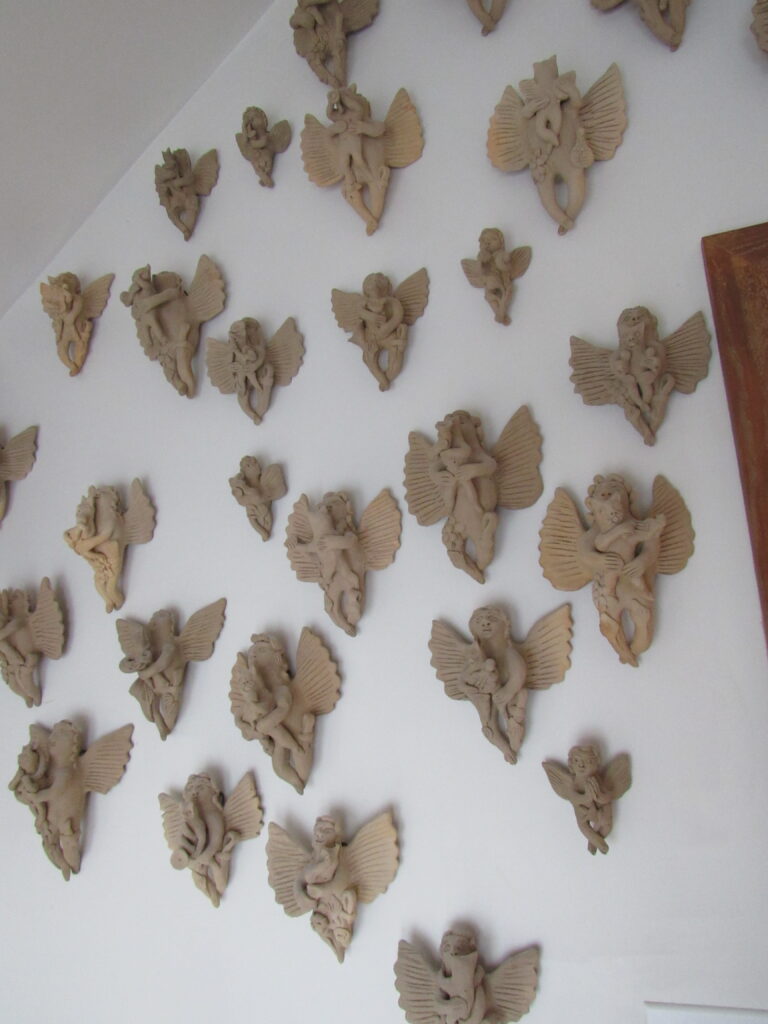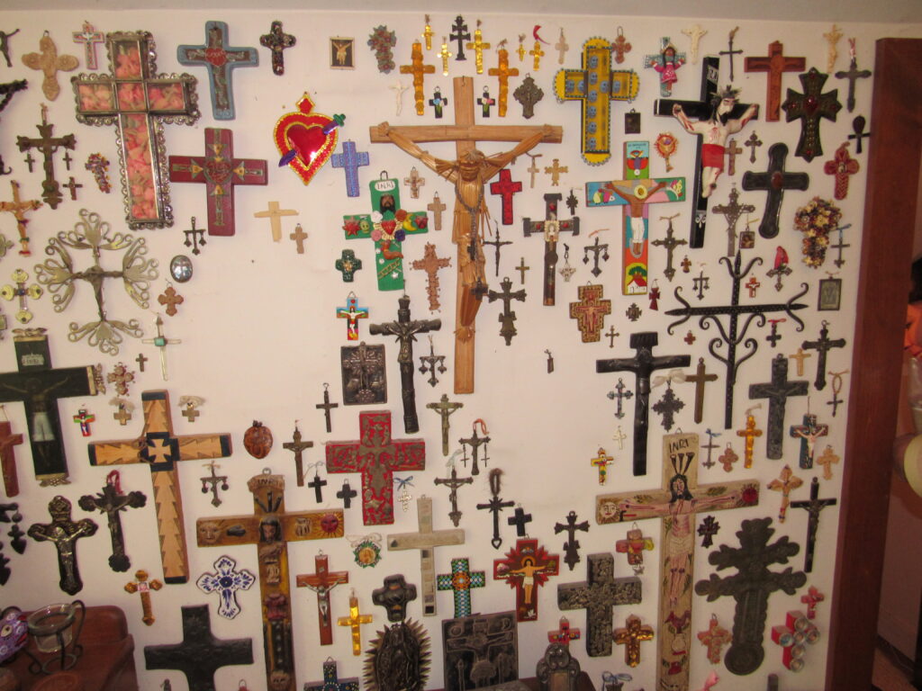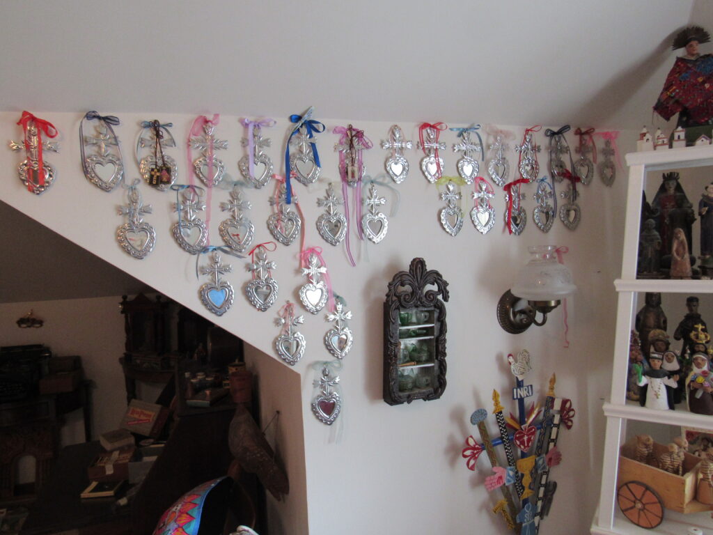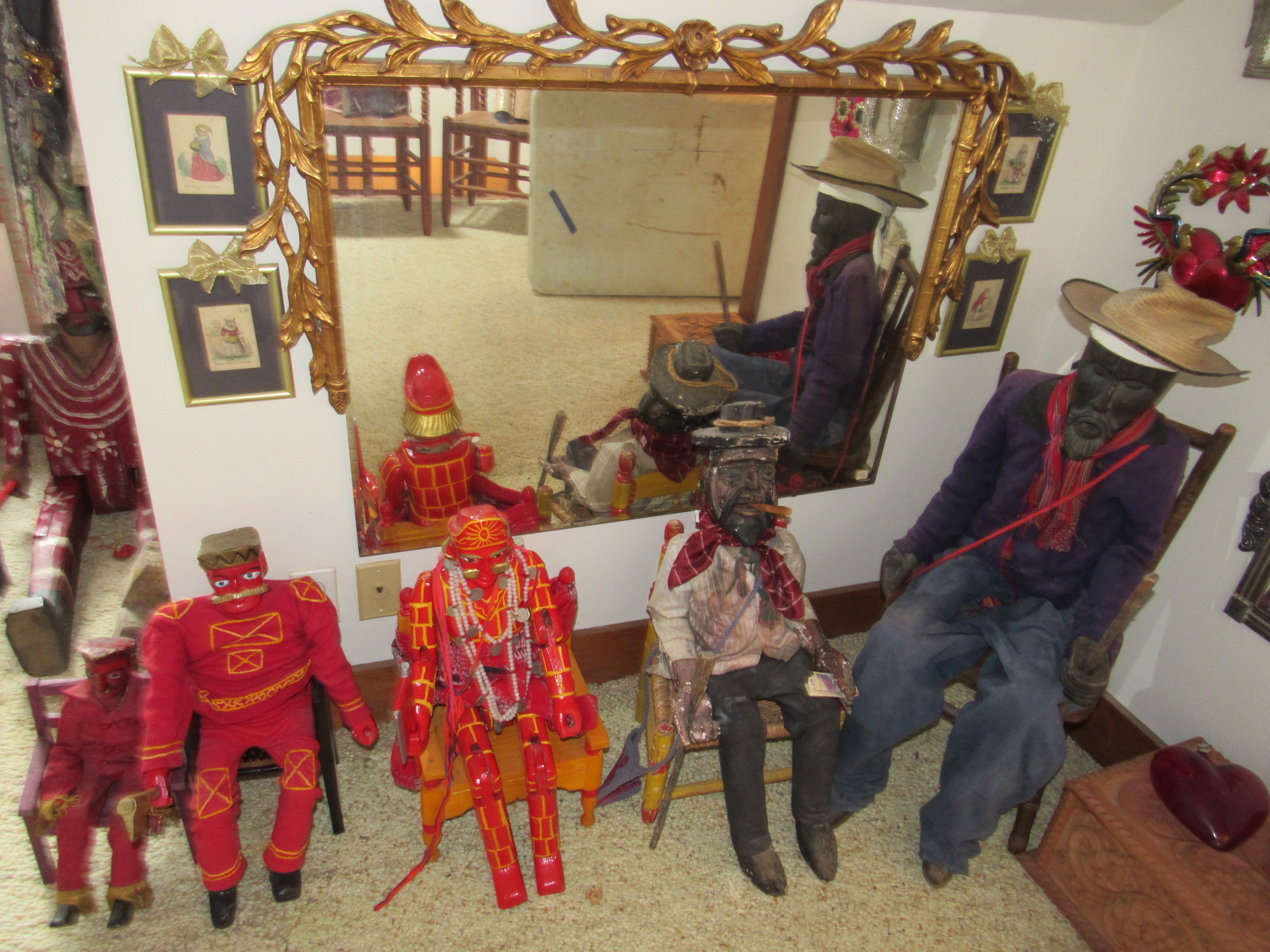• A stunning array of folks art including textiles, traditional clothing, pottery, clay & terracotta figurines, Chango Mezcaleros, Alebrijes, Guatemalan paper mache masks, Niche shrines, Worry dolls, puppets, Milagros, crosses, angels, saints & more religious art, statues and so much more