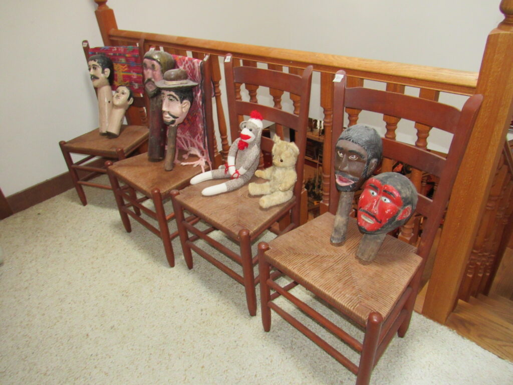 • Furniture including folk art benches, hall tree, multiple seating options, desks, display pieces, tables, bedroom pieces, cabinets and more