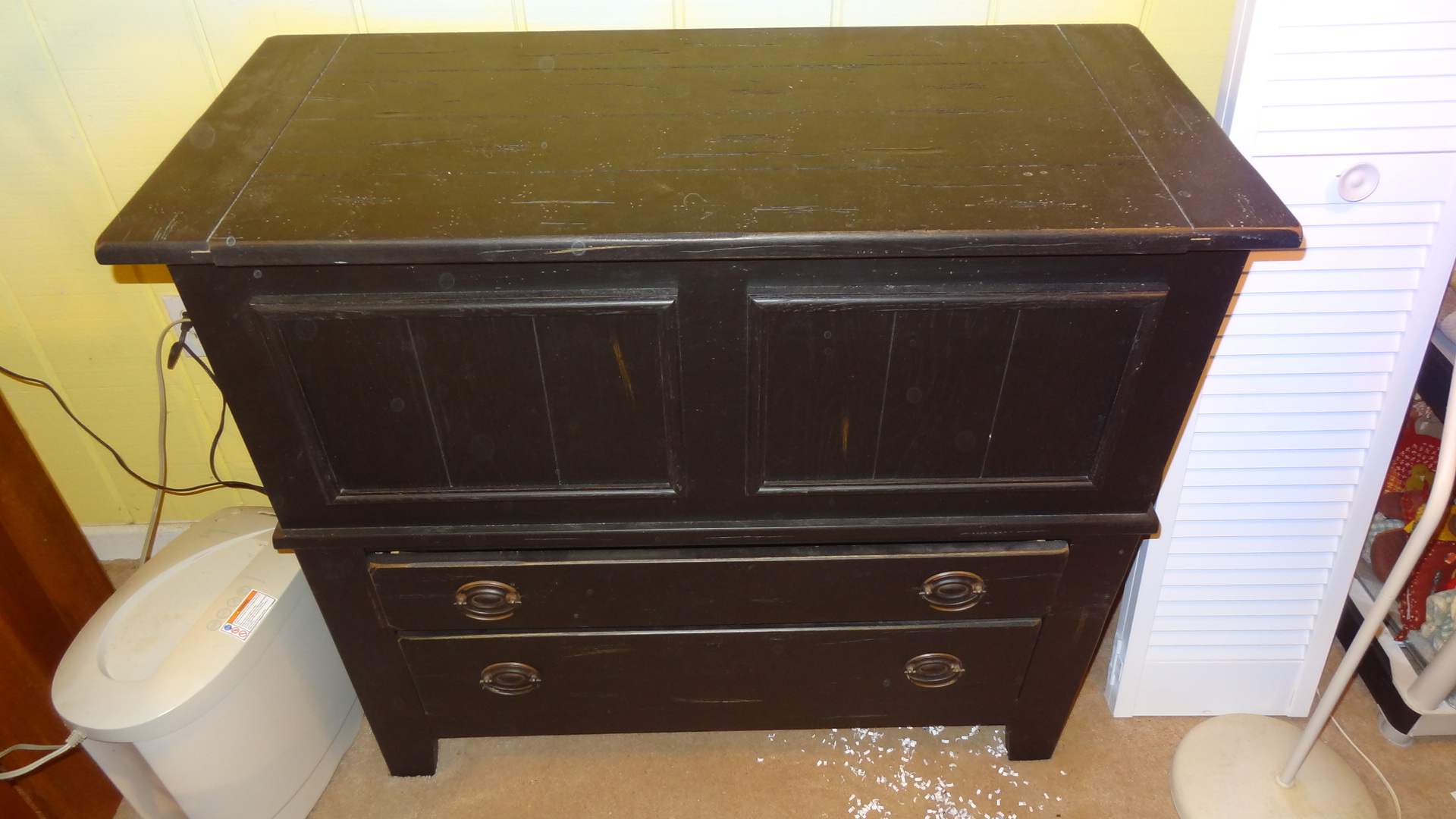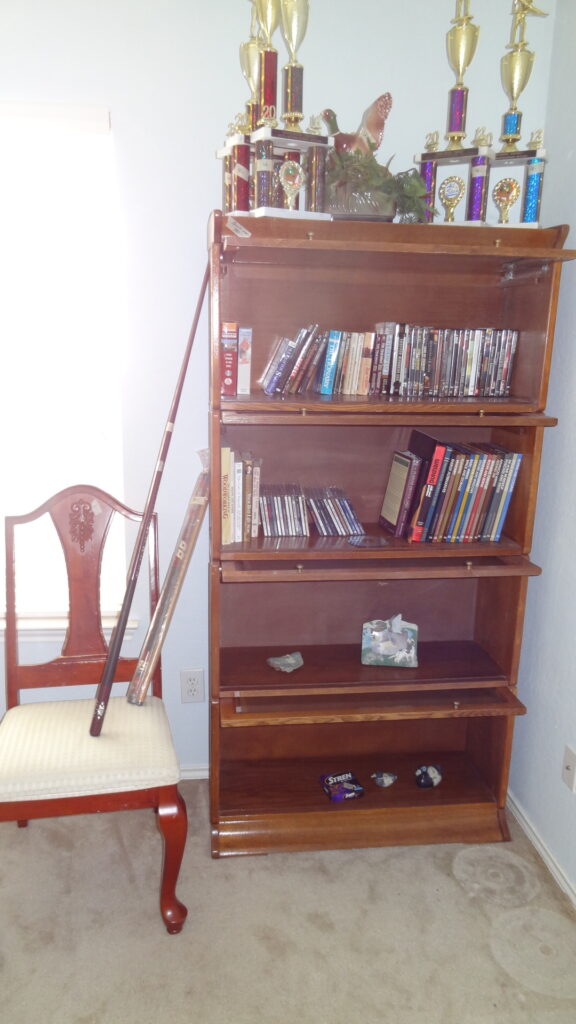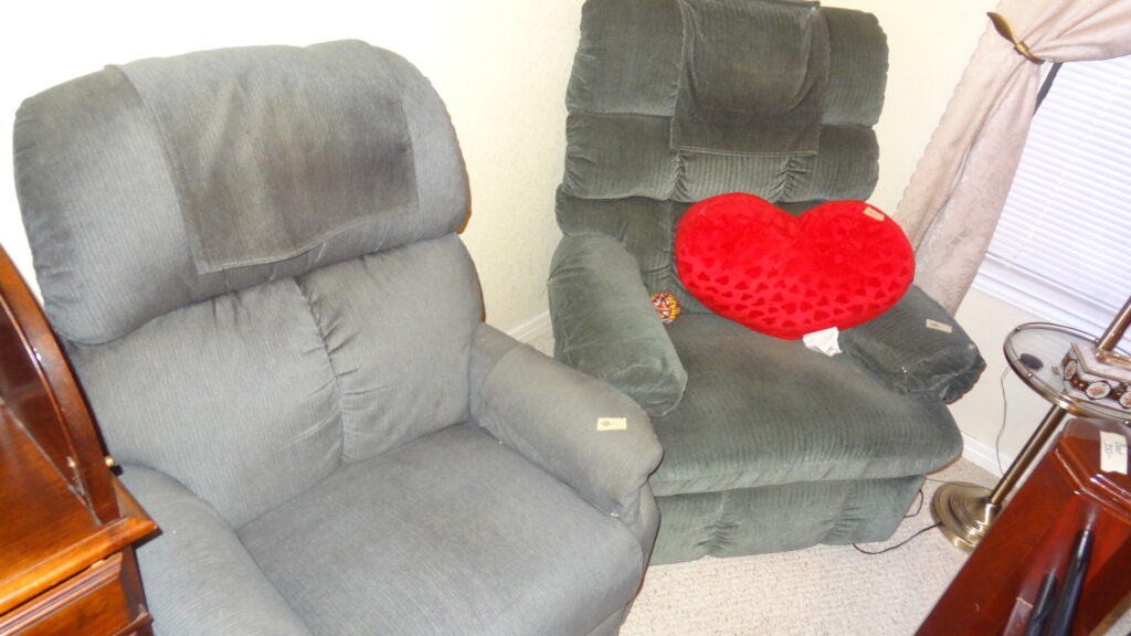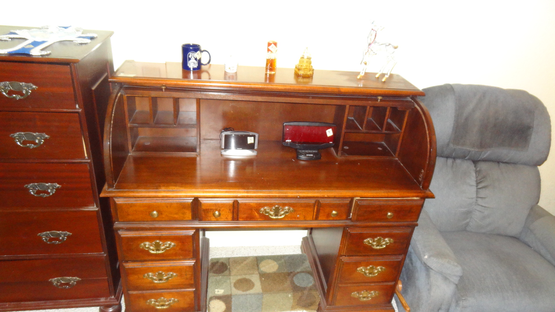 - Furniture including vintage pieces, entertainment center, leather couches, micro suede loveseat, lawyer’s bookcase, bedroom pieces, side tables, roll top desk, lazy boys, display cabinets & shelves and more